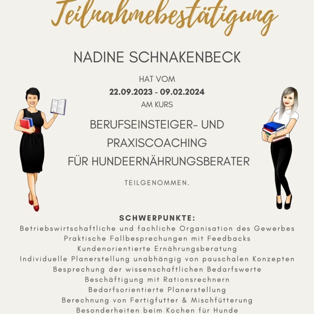 Mibekka Akademie Berufseinsteiger – und Praxiscoaching für Hundeernährungsberaterinnen